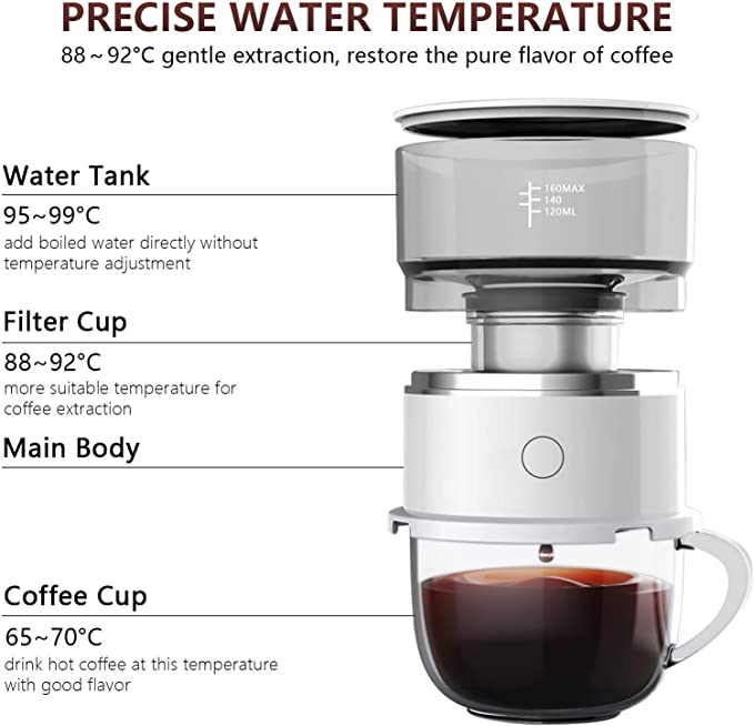 ☕【Healthy & Durable】The main body of the mini coffee maker is made of food-grade ABS material. The coffee filter cup is made of SU304 stainless steel, strong and durable, not easy to deform. The water tank is made of Tritan material, odorless and high temperature resistant. Healthy and hygienic, you can use it with confidence.