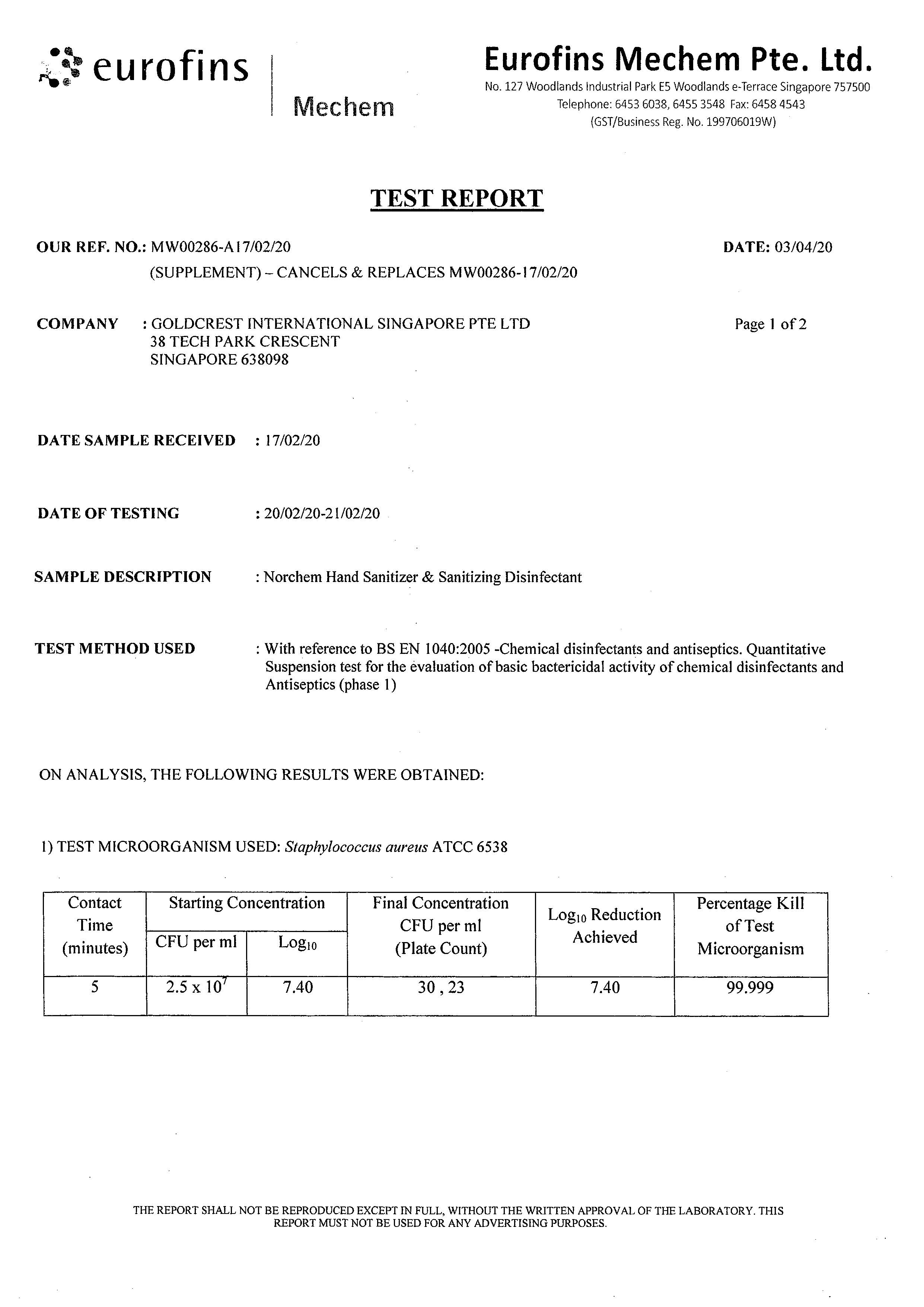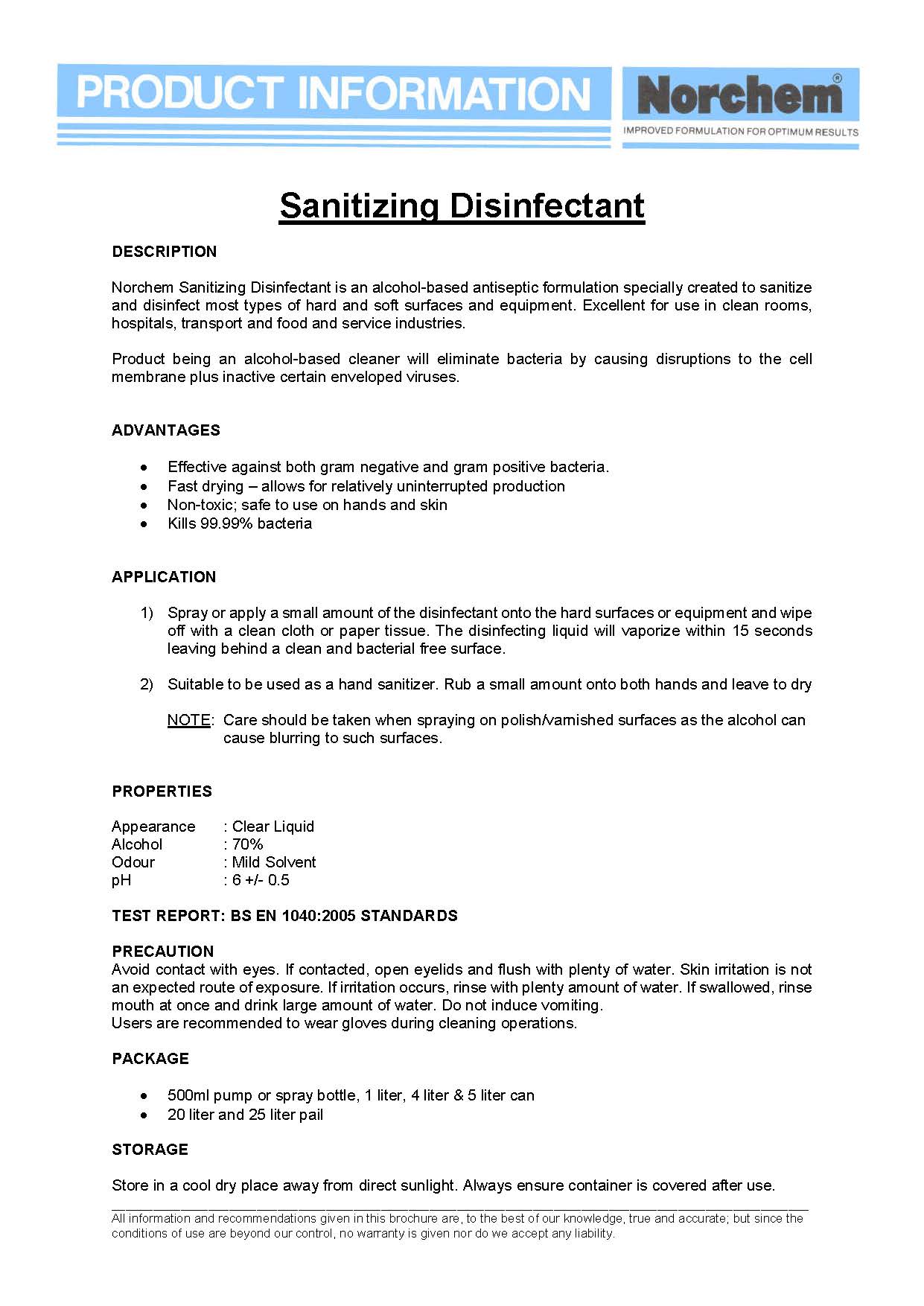 Norchem Alcohol Sanitizing Disinfectant (70% Isopropyl Alcohol) 5L
