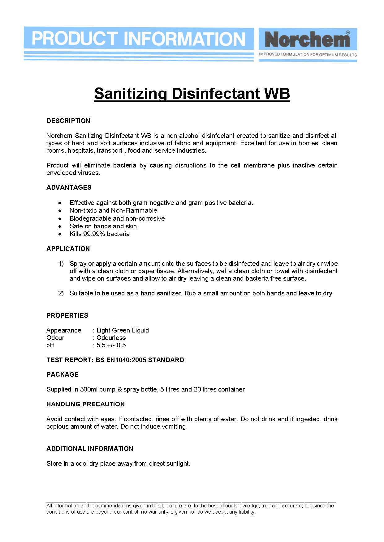Norchem Non Alcohol Sanitizing Disinfectant WB Spray Bottle 500ml