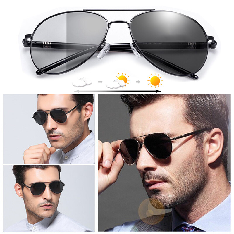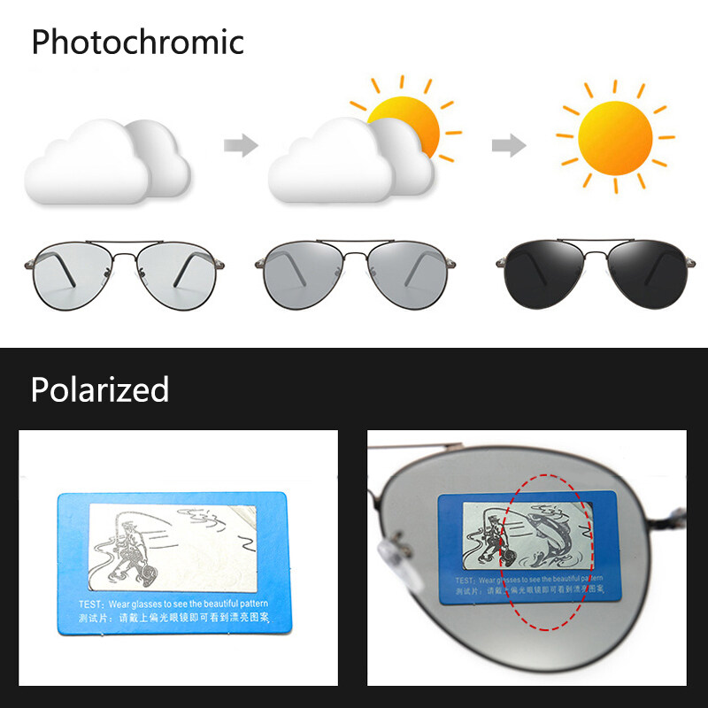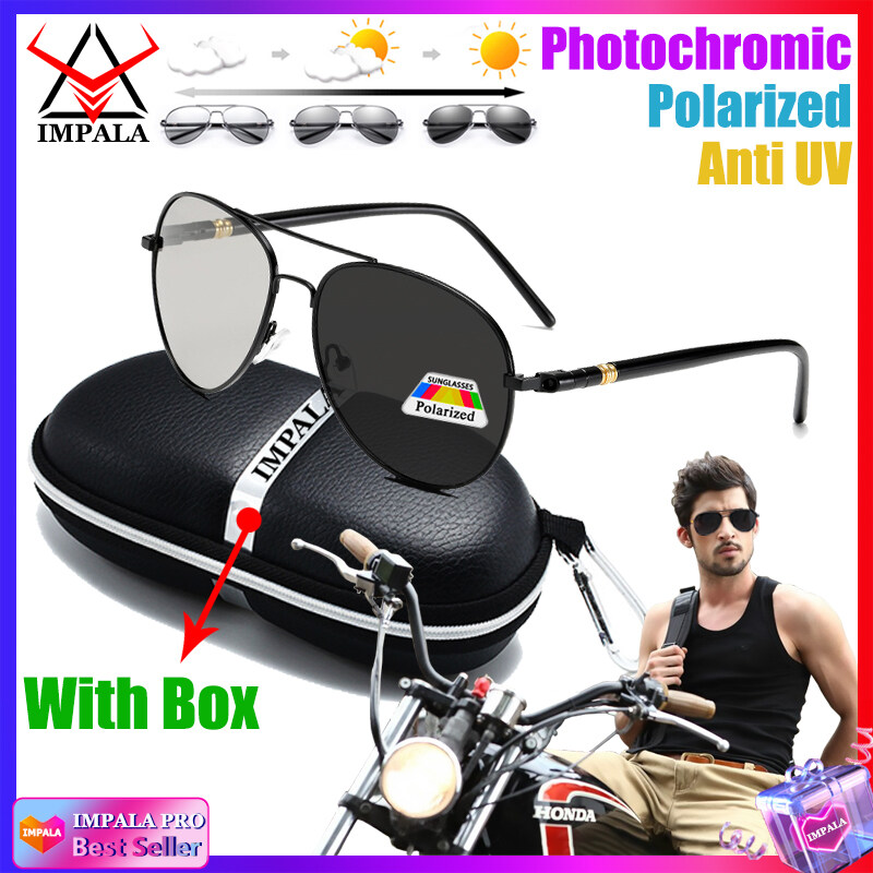 IMPALA PG1836L Fashion Men Polarized Photochromic Sunglasses Anti Glare UV400 HD Lens Metal Frame Driving Fishing Outdoor Soprts Glasses with case
