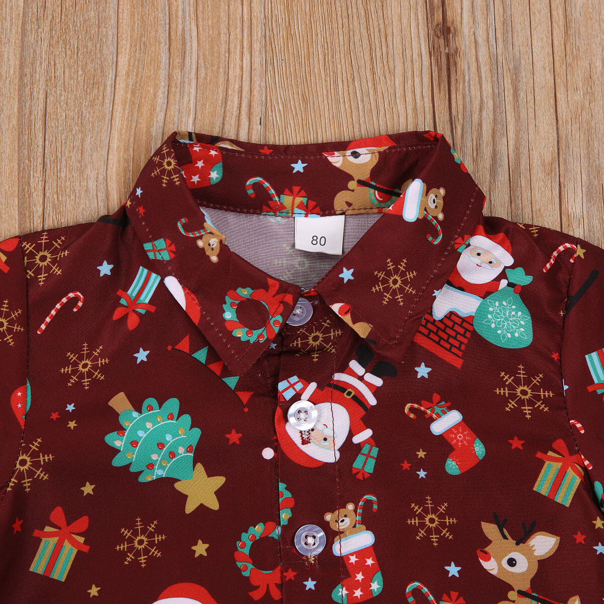 Summer Children’s 2-piece Suit, Solid Color Short Pants, Christmas Themed Print Polo Neck Short Sleeve Casual Suit