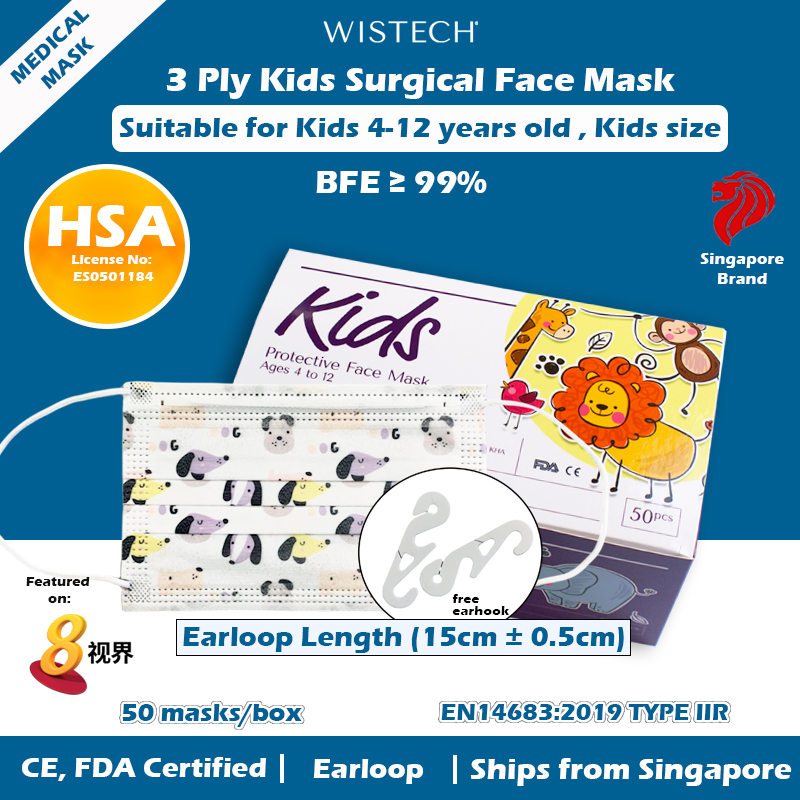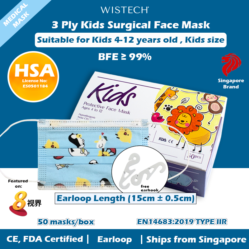 [OFFICIAL STORE] GET ADDITIONAL % OFF (BLUE CHICK/ANIMAL/OTHERS) Wistech 3 Ply Surgical Mask, Protective Mask, Kids mask, Kids size, 4 to 12 years old, HSA Notified Medical Device, FDA CE Approved, BF