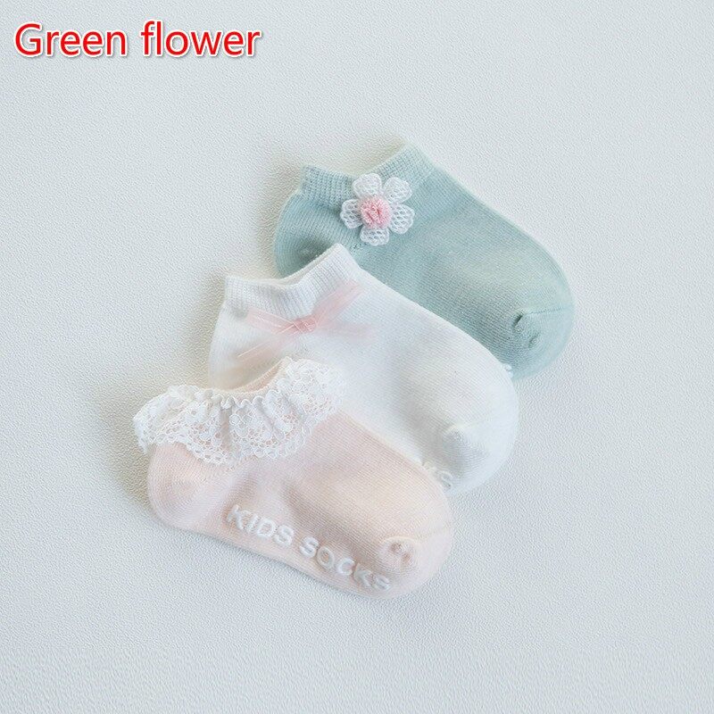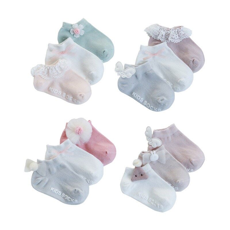 3 Pairs/Lot Newborn Baby Socks Lace Flower Wings Socks Anti Slip Floor Socks
