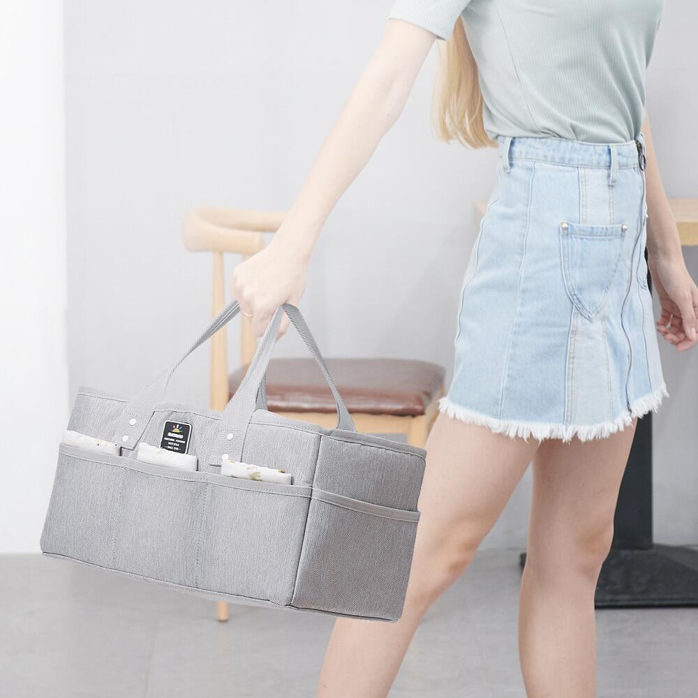 Remove the diaper organizer insert to use as a toy storage bin, baby hamper or nursery basket for additional nursery storage. Our lightweight, portable diaper caddy is waterproof and made of soft felt and features sturdy outer pockets for additional baby storage.