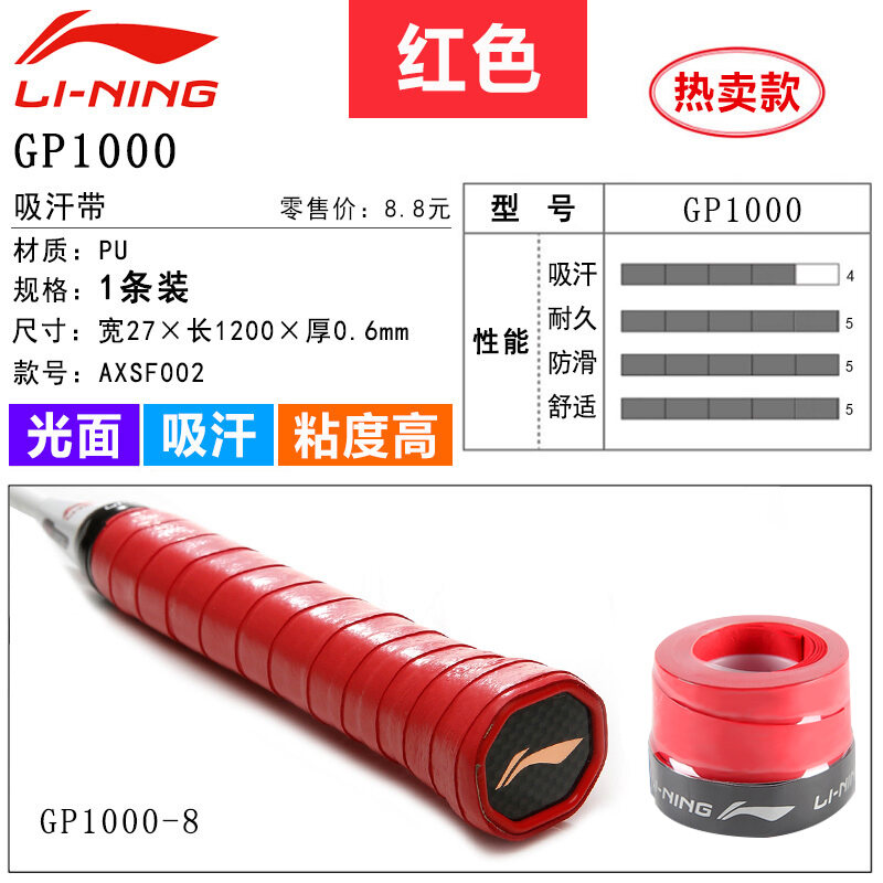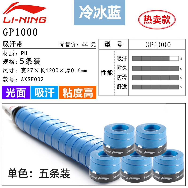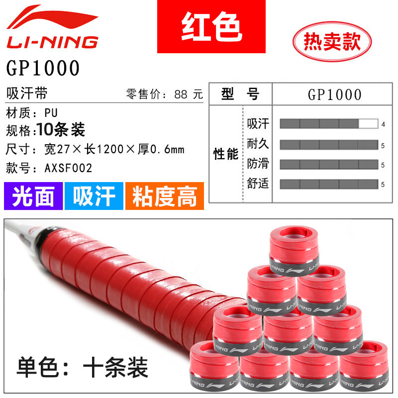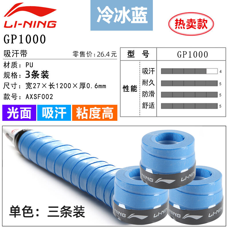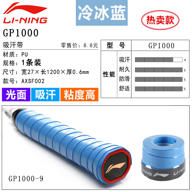 Li Ning Badminton Hand Glue Non-Slip Sweat Absorbing Badminton Racket Cover Tennis Racket Strap Handle Winding Gp1000