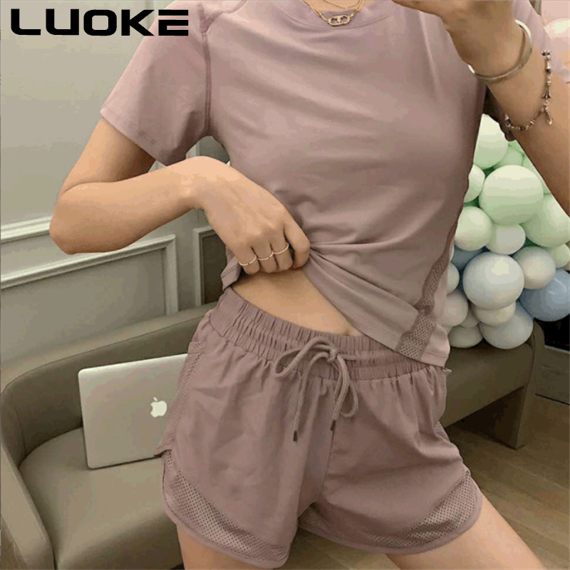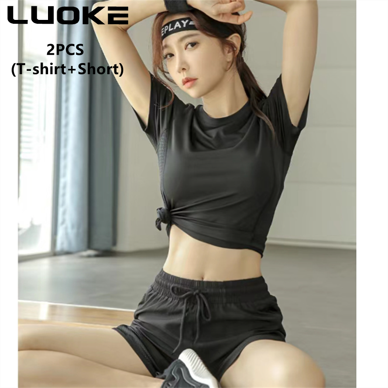 LUOKE Yoga Pants for Women Plus Size with Pockets Yoga Suit for Women Elastic Fitness Sport Short Pants Women Wear Running Shorts Pants Quick Dry High Elasticity Double Layer
