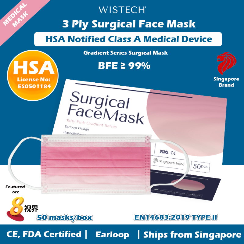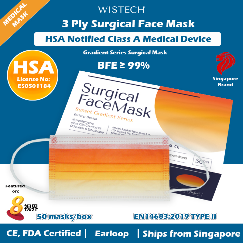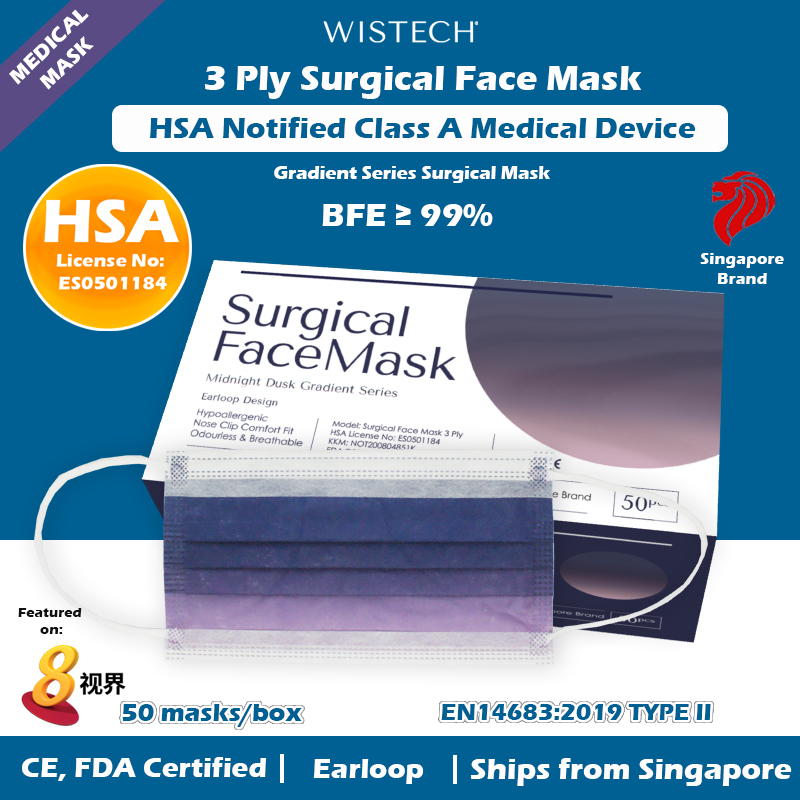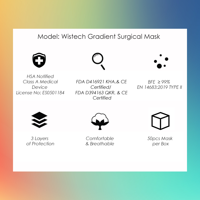 [GET %% OFF MIX AND MATCH] Ocean Blue Gradient Wistech 3 Ply Surgical Face Mask, 50 pieces, HSA Notified Medical Device, FDA CE Approved, BFE 99%, Singapore Local Stock