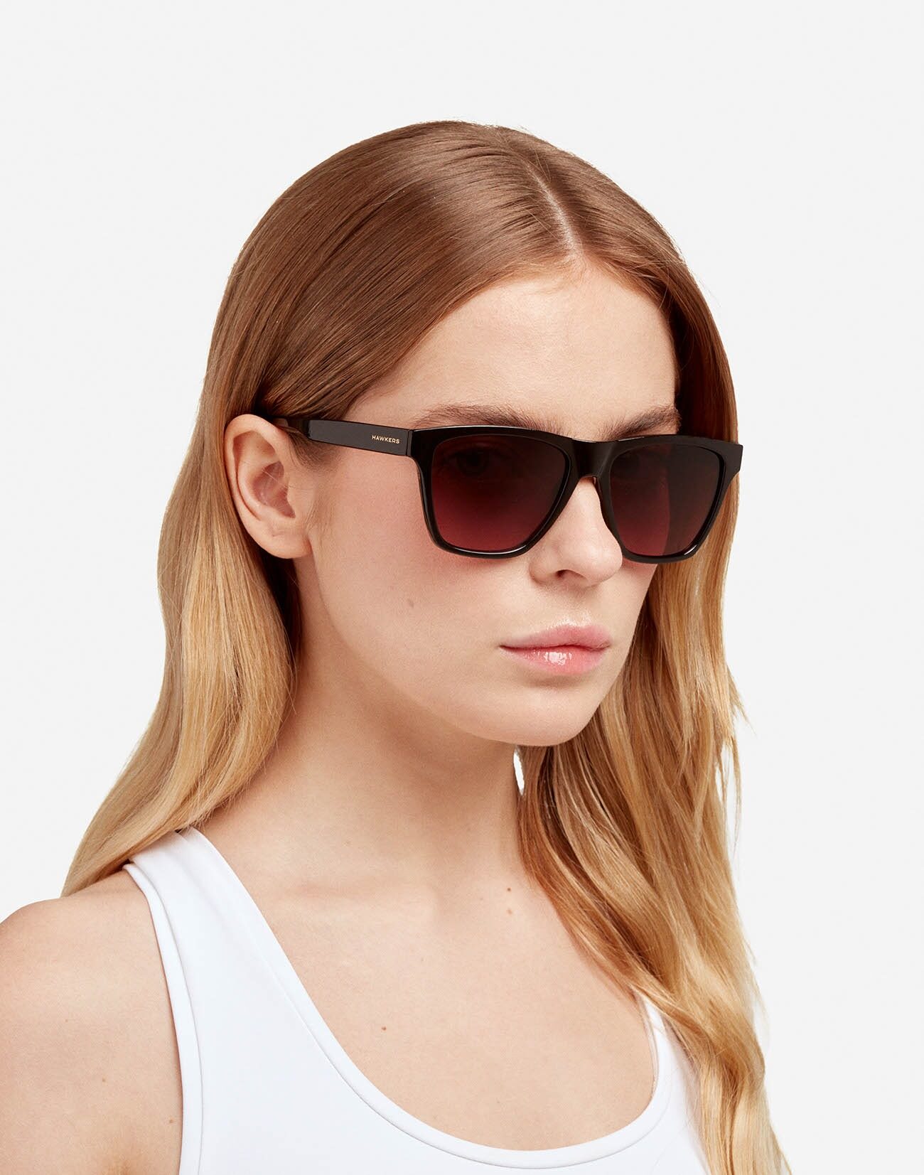 Polished black frame and wine-coloured gradient lenses.