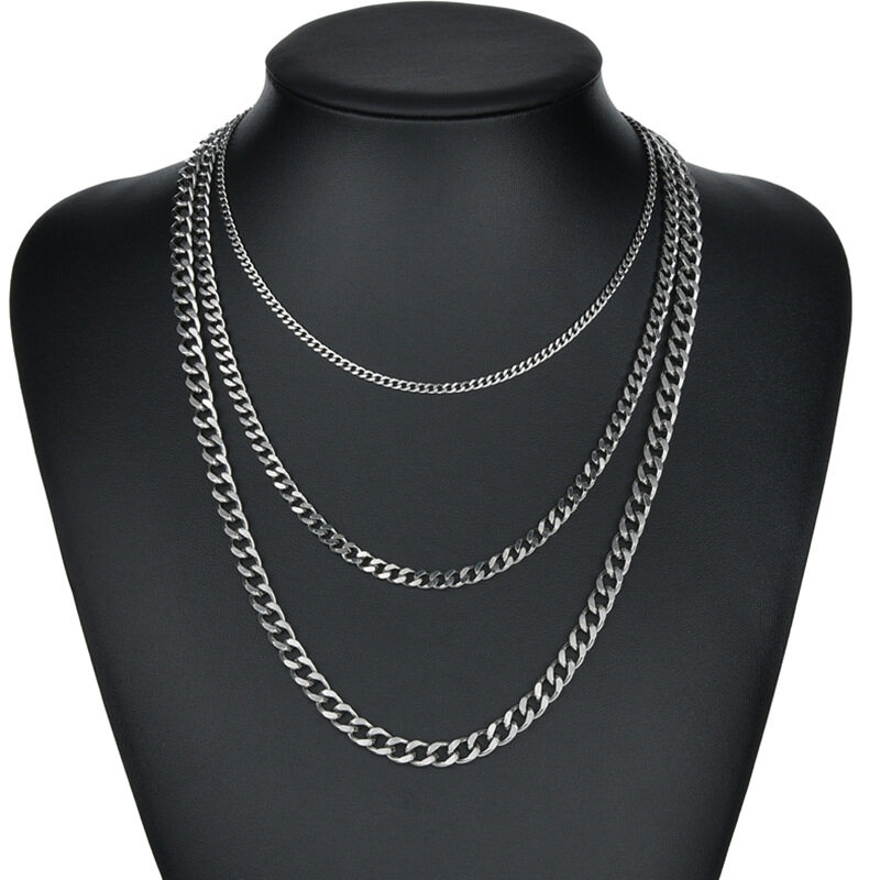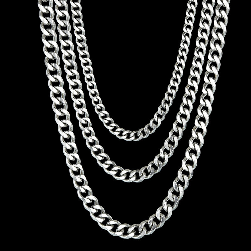 Men's Necklace Stainless Steel Cuban Link Chain Silver Color Male Jewelry Gifts For Men 3COLORS None
