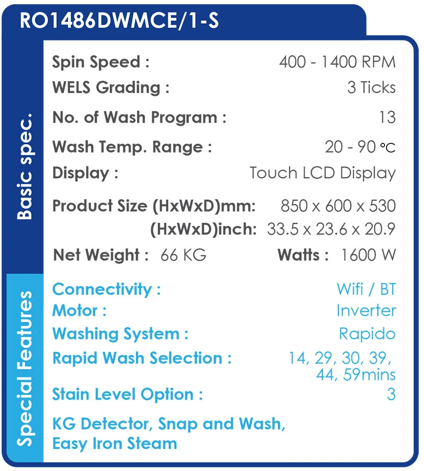 (Bulky) CANDY RO1486DWMCE/1-S INVERTER RAPIDO 8KG WHITE FRONT LOAD WASHING MACHINE