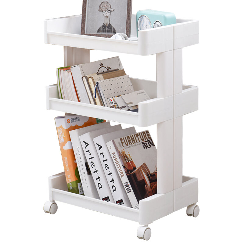 Movable Bookshelf Trolley with Wheels Storage Rack Floor Small Bedroom Storage Rack Living Room Multi-Layer Storage Rack