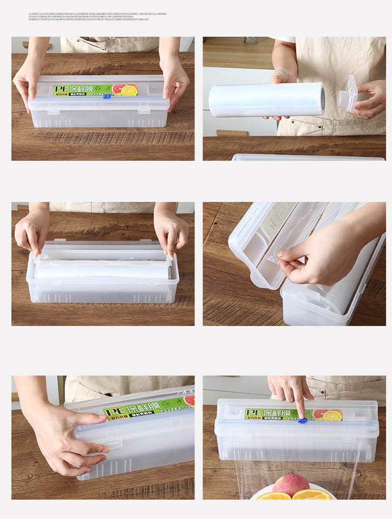 Bloog 【Ready Stock】1Pcs Upstyle Food Plastic Cling Wrap Dispenser Preservative Film Cutter with Slide Cutter Adjustable Cling Film Cutter Preservation Foil Storage Box