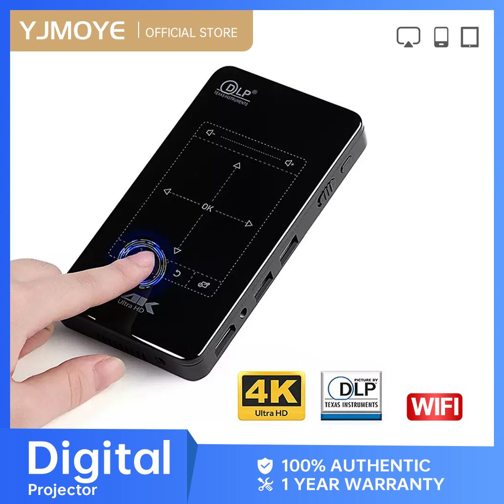 YJMOYE Mini Pico Digital Projector Portable 4K1080P Bluetooth Smart WiFi Wireless Charged Projectors for Home or Outdoor Theater