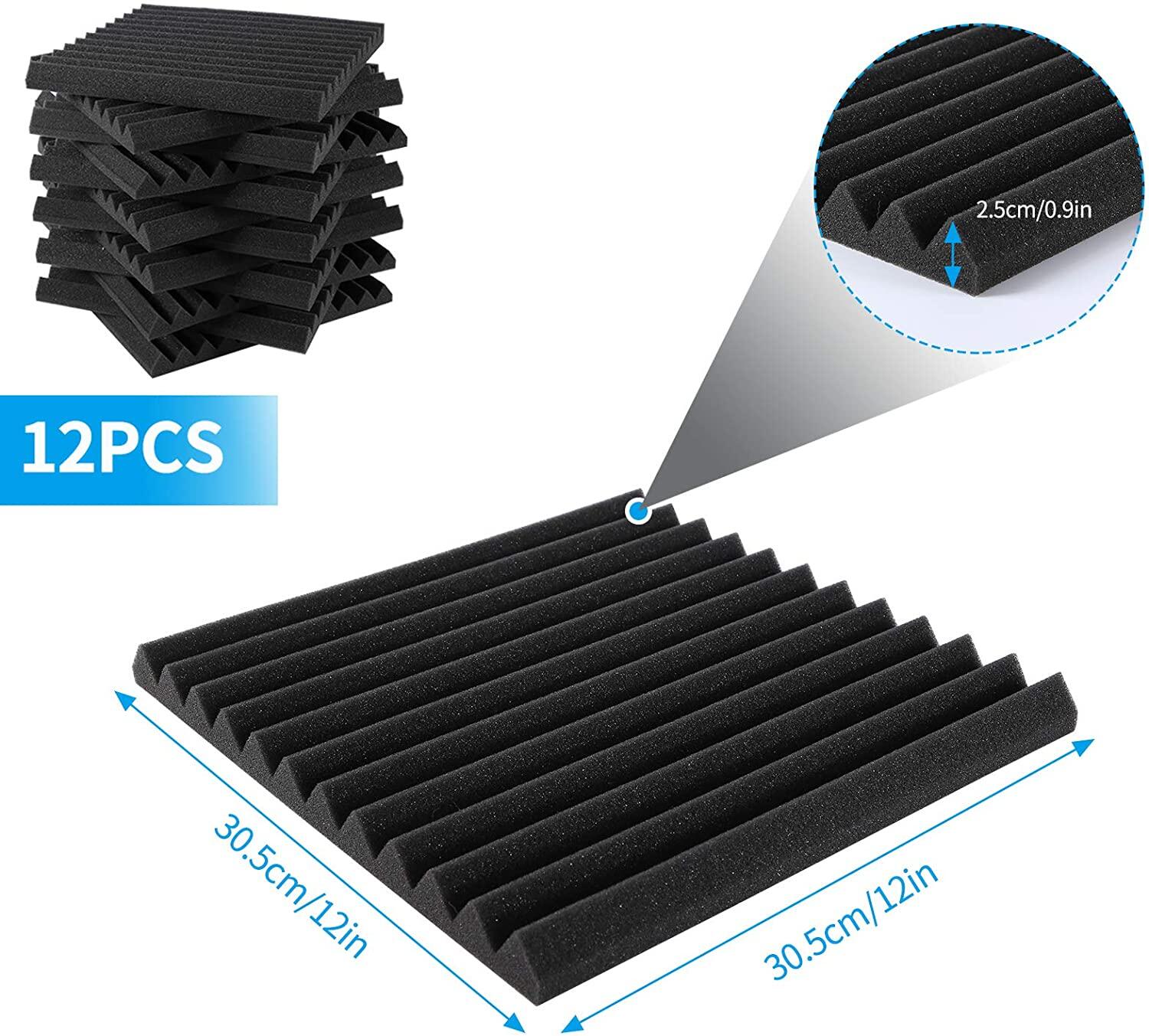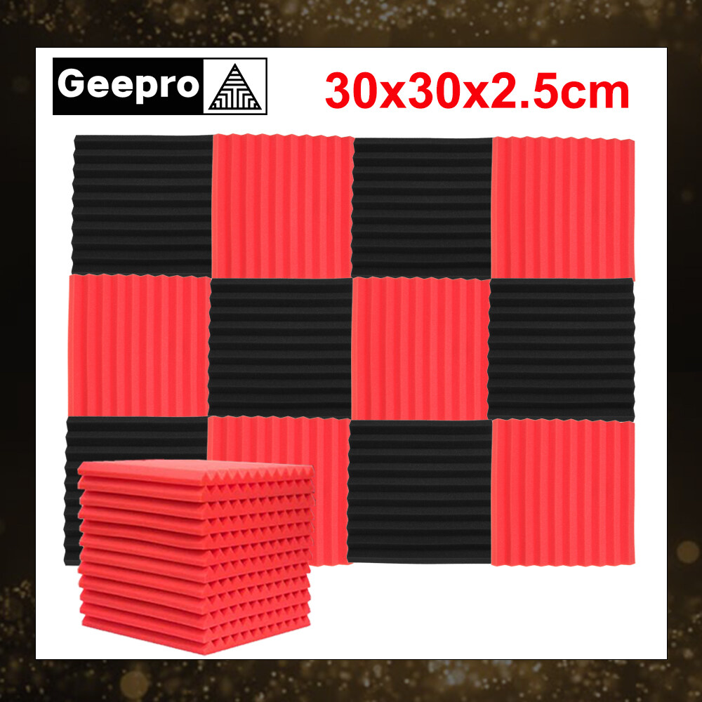 Geepro 30x30x2.5cm 12pcs Thick Soundproof Studio Acoustic Foam Sound Absorbtion Proofing Panels Tiles Wedge Sound Proofing Foam Wall