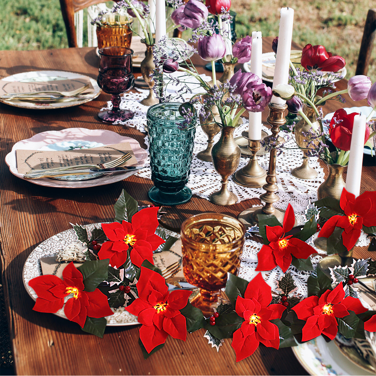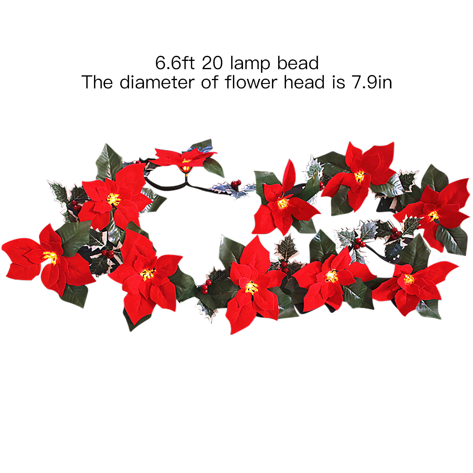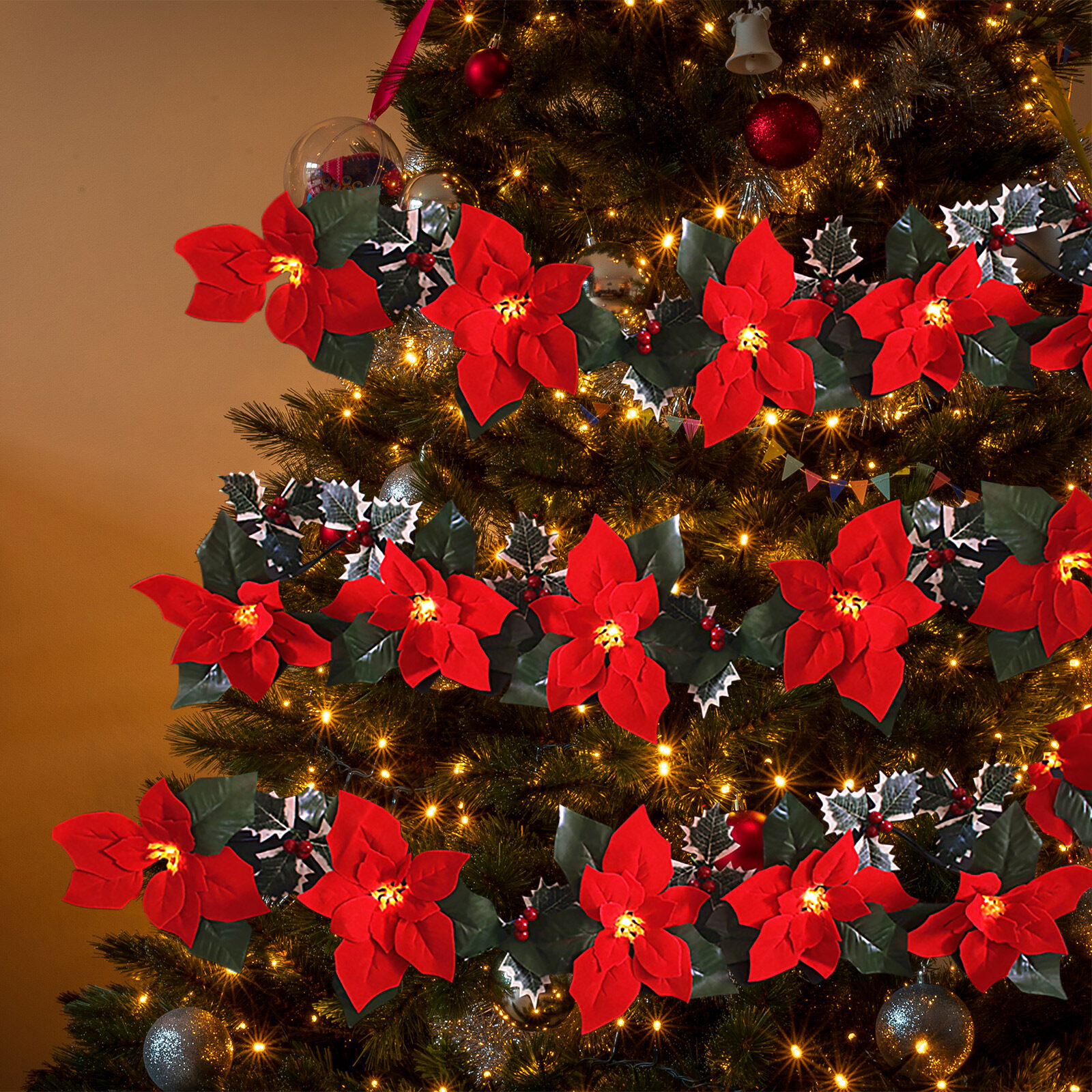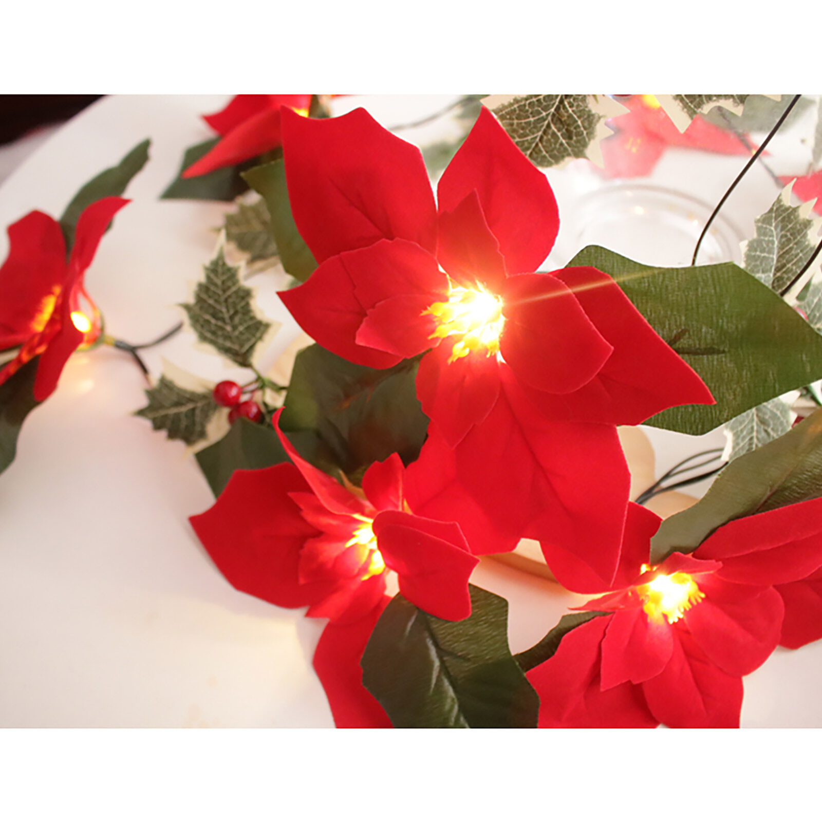 [Pantorastar] Simulation Flowers Holiday Lights Cable Tie With For Christmas Tree Home Decoration 2 Meters Flannelette Poinsettia String