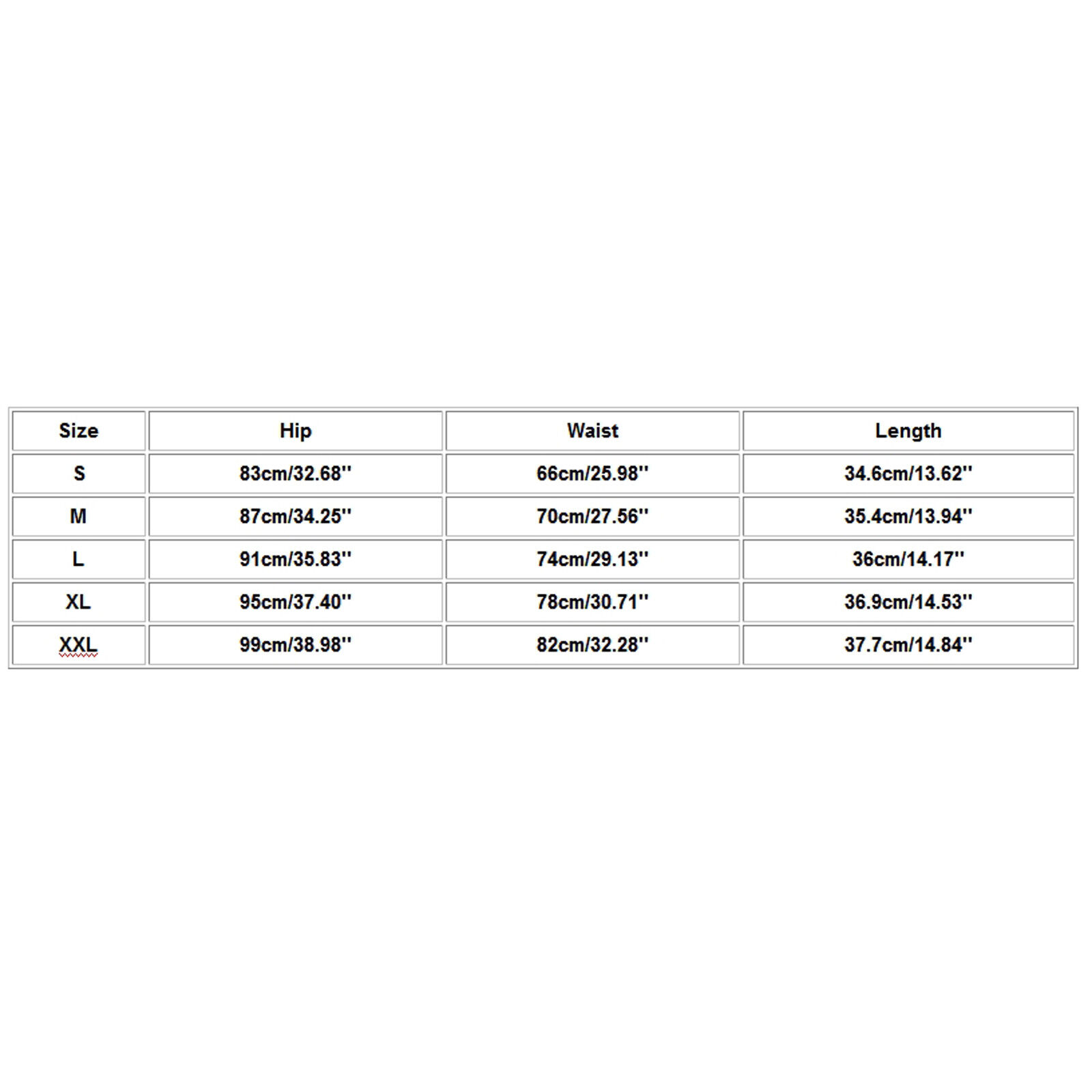 Size:XXL Hip:99cm/38.98'' Waist:82cm/32.28'' Length:37.7cm/14.84''