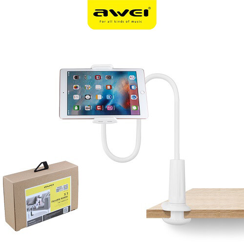 Awei X3 White Lazy Phone Holder 360 Rotating Fexible Universal Available Desk bed Holder Long Arm Lazy Phone Holder Adjustable Desktop Bed Tablet Clip For Mobile Phone Pad and Tablet PC