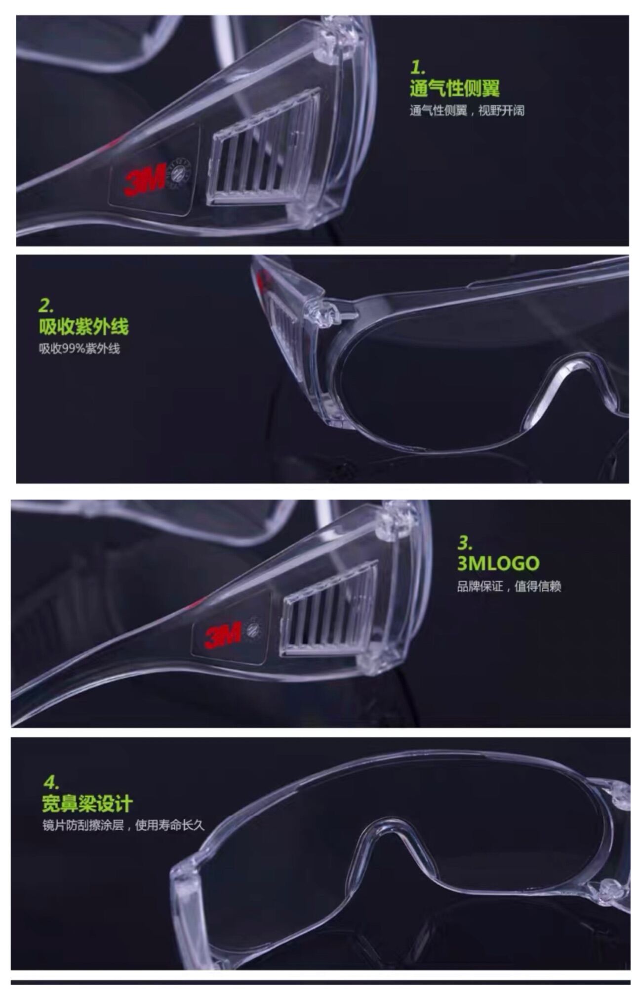 Anti fog 3M 1611 Goggles face shield glasses
