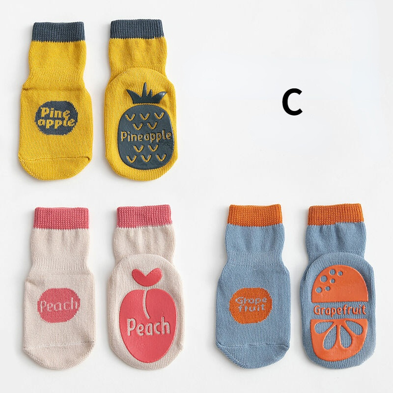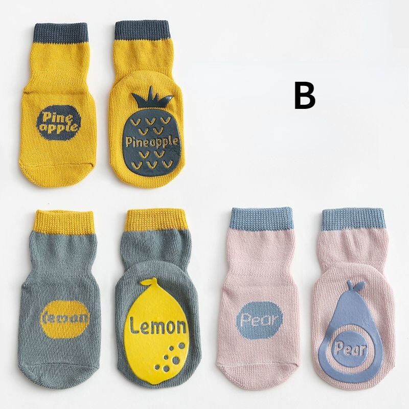3 Pairs Kids Floor Socks Baby Newborn Infant Anti Slip Sock Breathable Indoor Toddler Socks Cute Fruit Children Socks