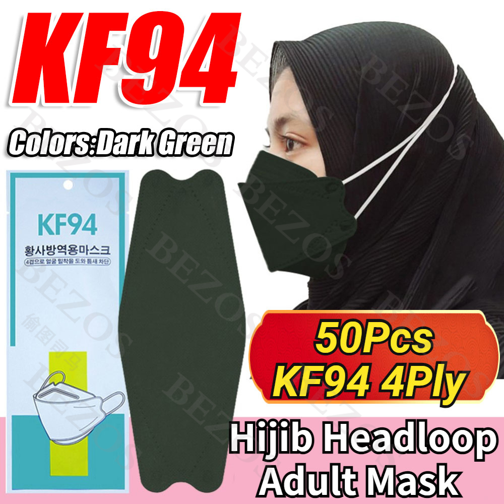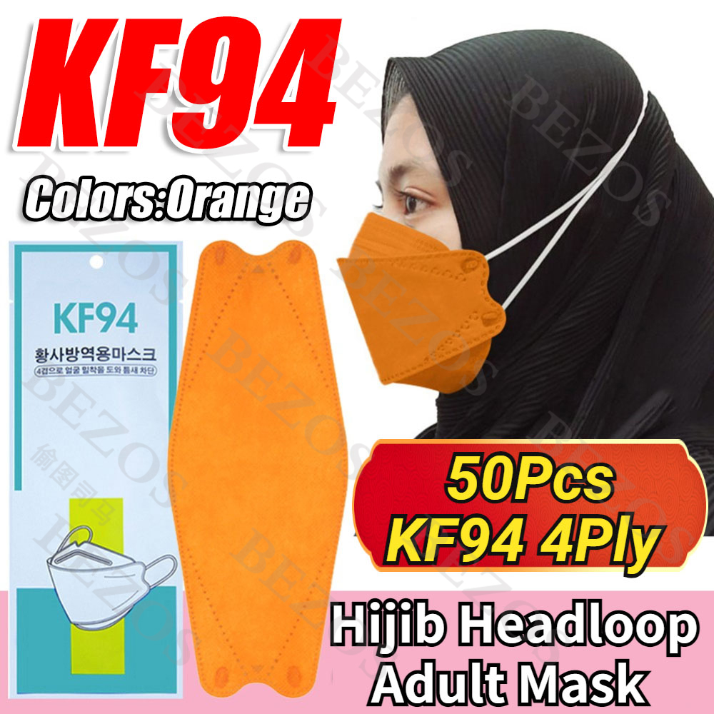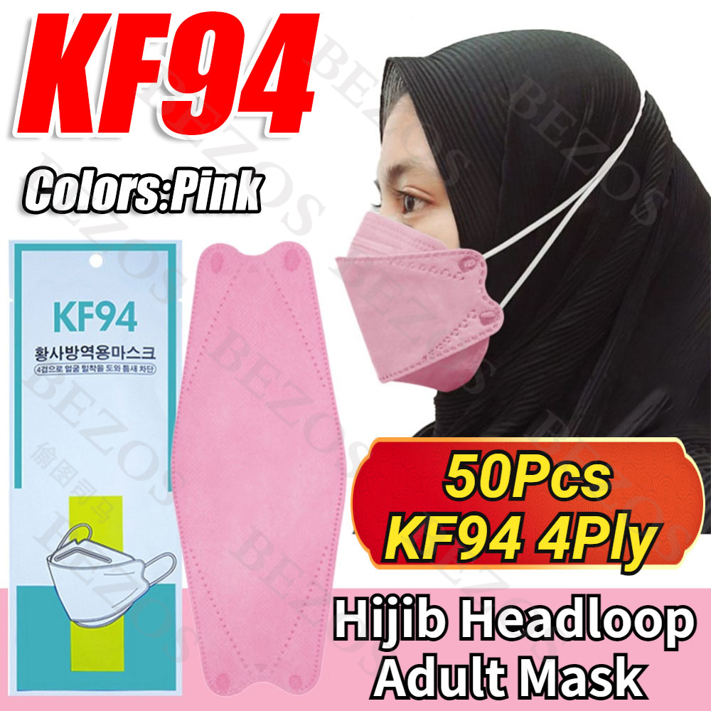 【Hijab】14Colors 50PCS KF94 Headloop Hijab Korean Topeng Muka Headloop 4Ply High Quality FaceMask Topeng Muka Tudung Kpop Kdrama Protection Korea Respiratory Products Cover Prevent Influenza and Antiba