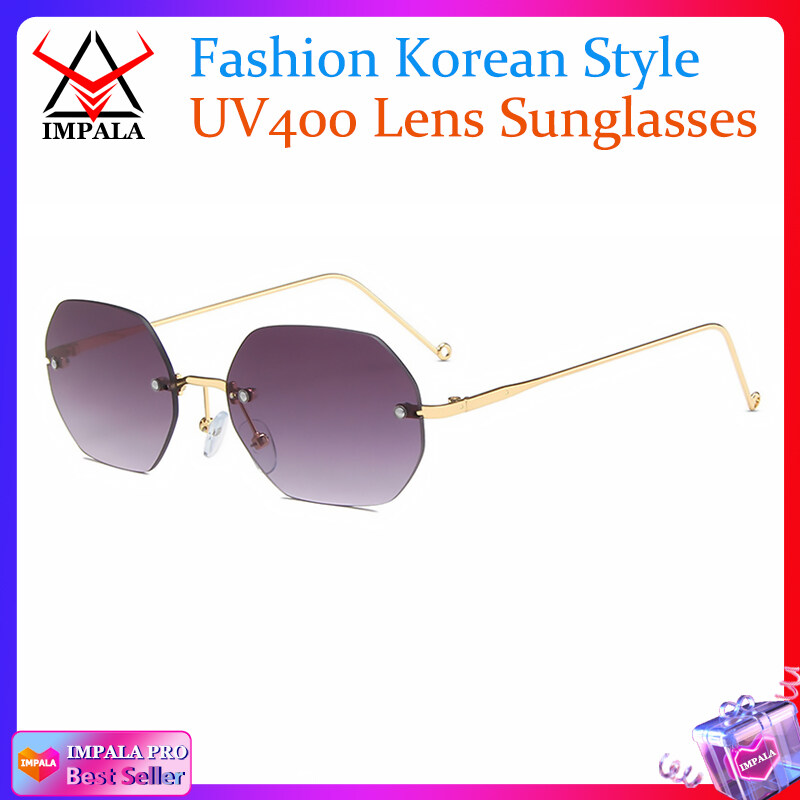 IMPALA QT1648W Korean Style Sunglasses for Men Women Rimless Shades UV400 HD Lens Anti Glare Fashion Sun Glasses Male Female Driving Traveling Eyeglasses