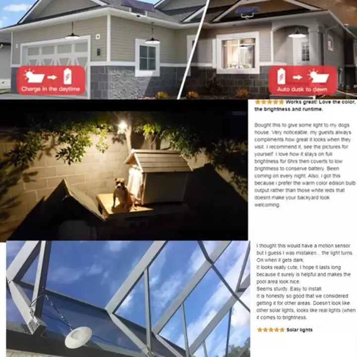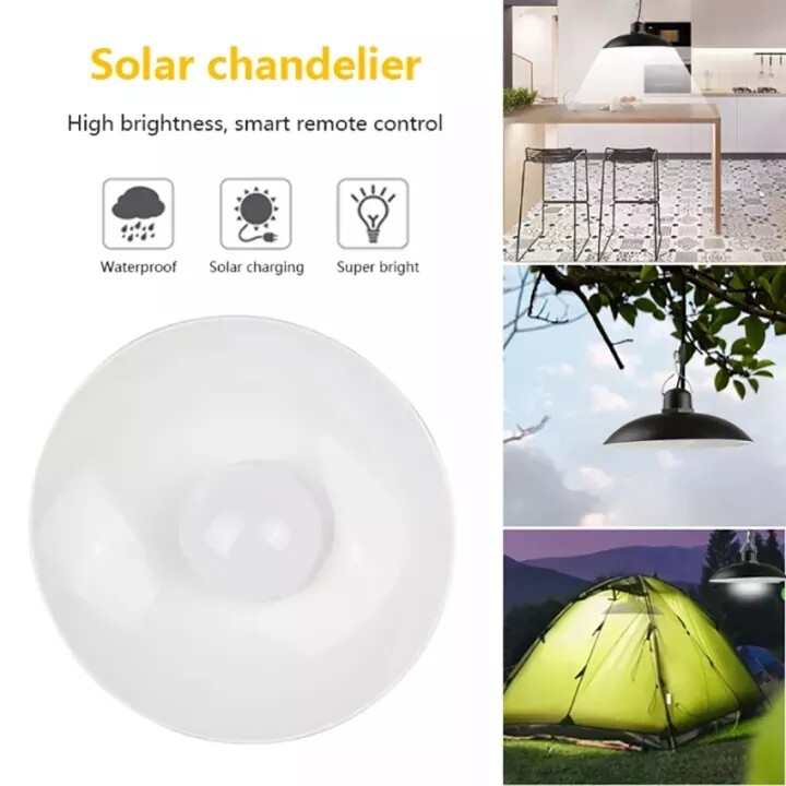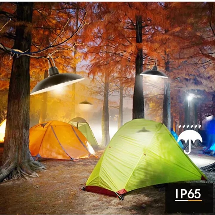 【Kkmaoyi】 Led Lampu Solar Pendant Light Outdoor Waterproof Garden Lights Double Headed Hanging Solar Panel Light Bulb Indoor House Ceiling Lamp with Remote Control 3M Cable for Yard Gate Camping Stree