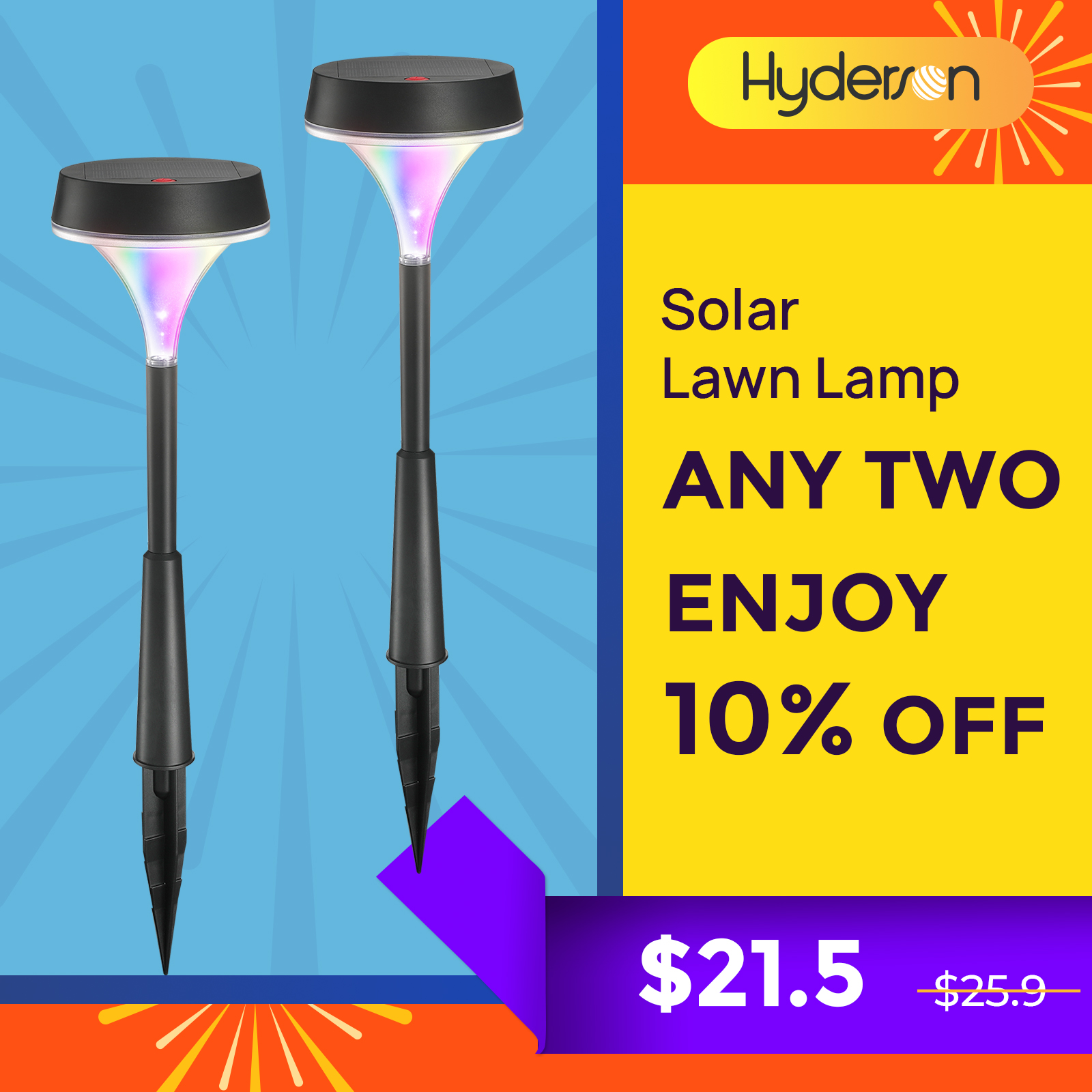 2pcs Hyderson Solar Lights 3000K RGB Emergency Outdoor Solar Garden Lights IP67 Waterproof 150lm Bright LED Landscape Light Solar Walkway Lights for Path Yard Patio Driveway Christmas [2 Years Warrant