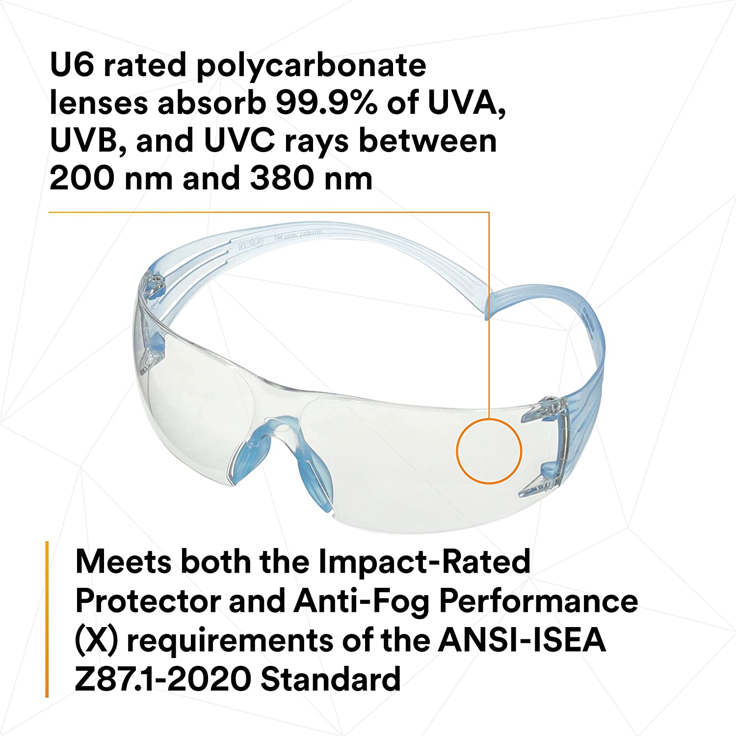 The SecureFit™ 300 Series is designed with Asian features in mind and self-adjusts to the individual wearer, providing comfort that lasts all day. These lightweight safety glasses also feature durable polycarbonate lenses with 3M™ Scotchgard™ Anti-Fog coating to help you see clearly and work safely.