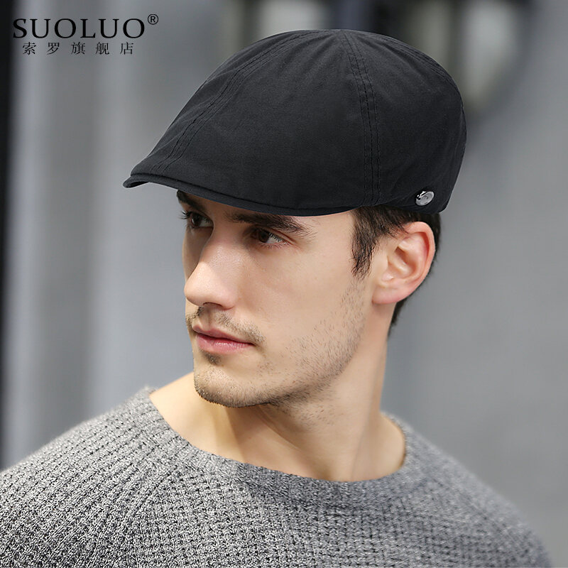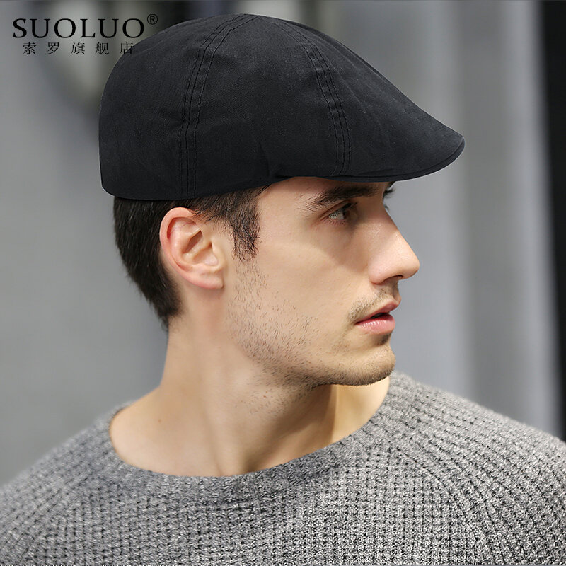 Hat Men's Summer Beret Vintage Brim Hat Korean Fashion Youth Advance Hats Female Black British Painter Cap
