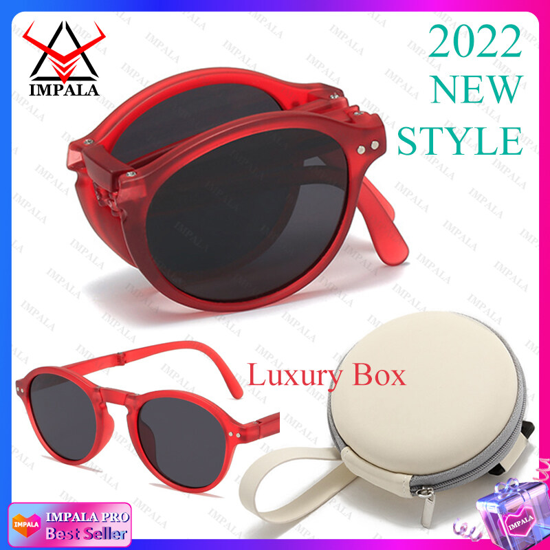 IMPALA QT2010Y Foldable Sunglasses with Luxury Round Case Anti UV Anti Glare Sunglasses for Women UV400 Protection Travel Sunglasses HD Lenses Exquisite Packaging