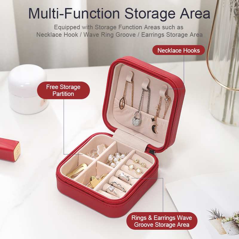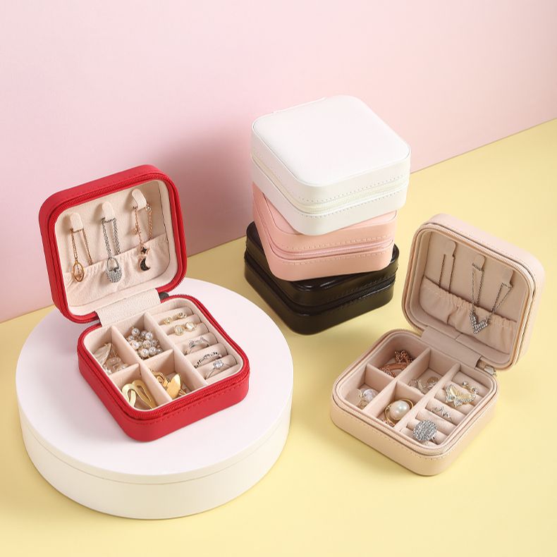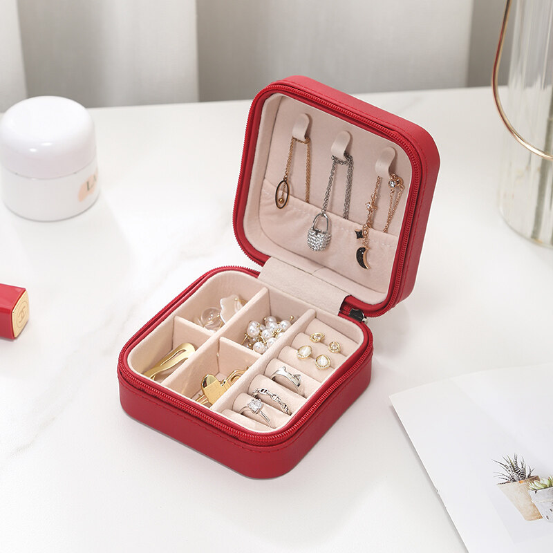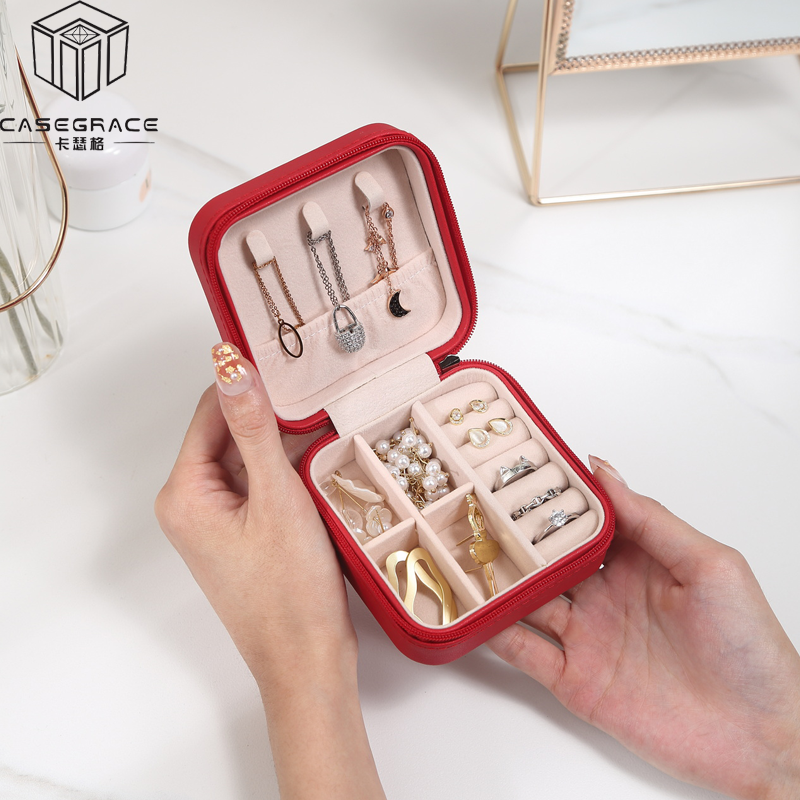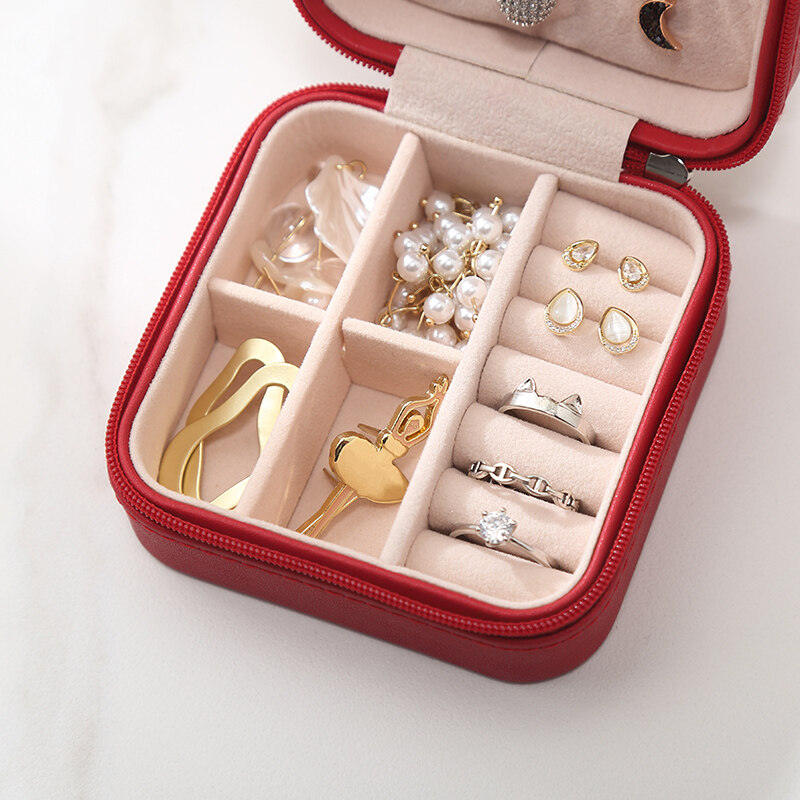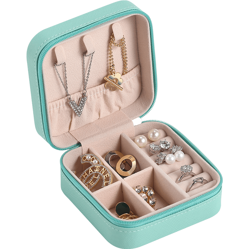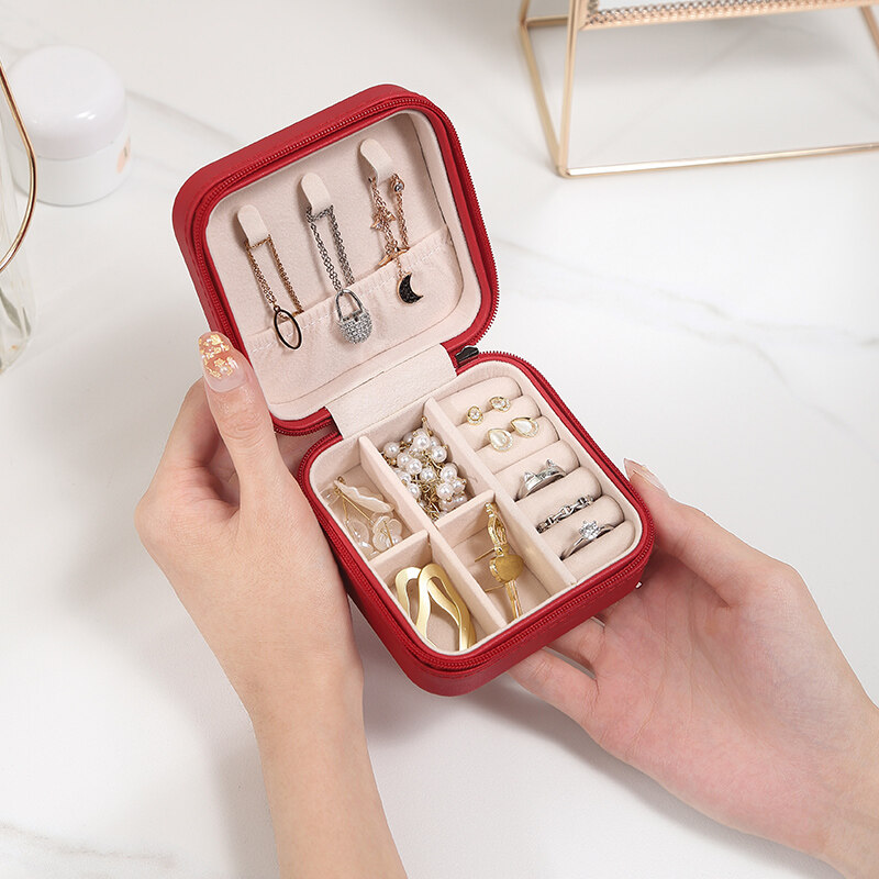 Charming Spot Mini Jewellry Storage Box Zipper Portable Travel Jewelry Box Velvet Jewelry Organizer