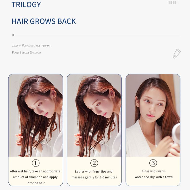 Bagaimana cara menggunakan: Ambil 10ml-15ml produk ini, pijat kulit kepala selama sekitar 5 menit dan bilas. Oleskan lebih dari dua kali sekaligus di kepala, efek botaninya cukup besar