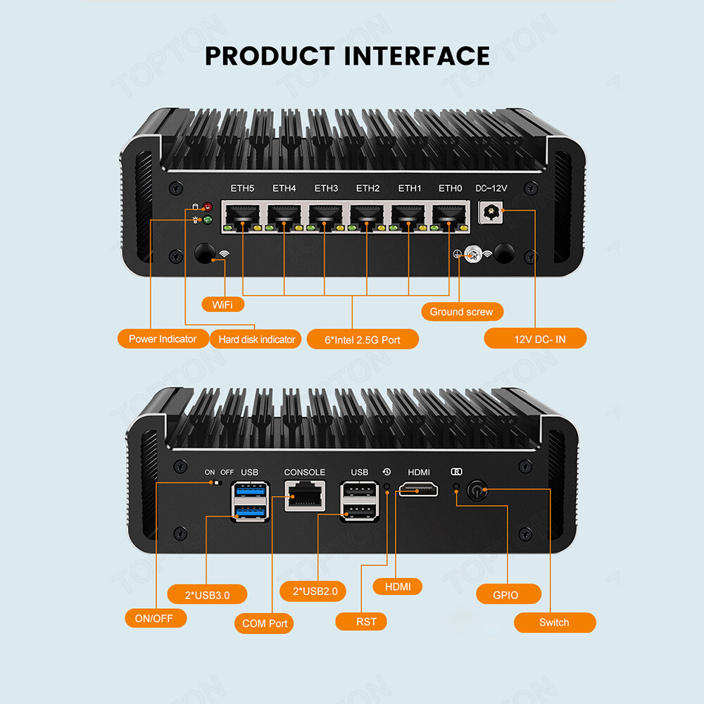 TOPTON 12th Gen Firewall Router Elkhart Lake Celeron J6413 J6412 6x Intel i226-V 2500Mbps Nics Fanless Mini Router PC