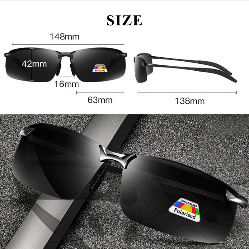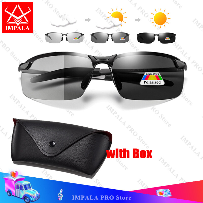 IMPALA PG036K Fashion Photochromic Polarized Sunglasses for Men Metal Frame Anti Glare Resin Anti Shatter Lens Day and Night 2 in1 Outdoor Sports Eyewear for Driving and Fishing with Glasses Case