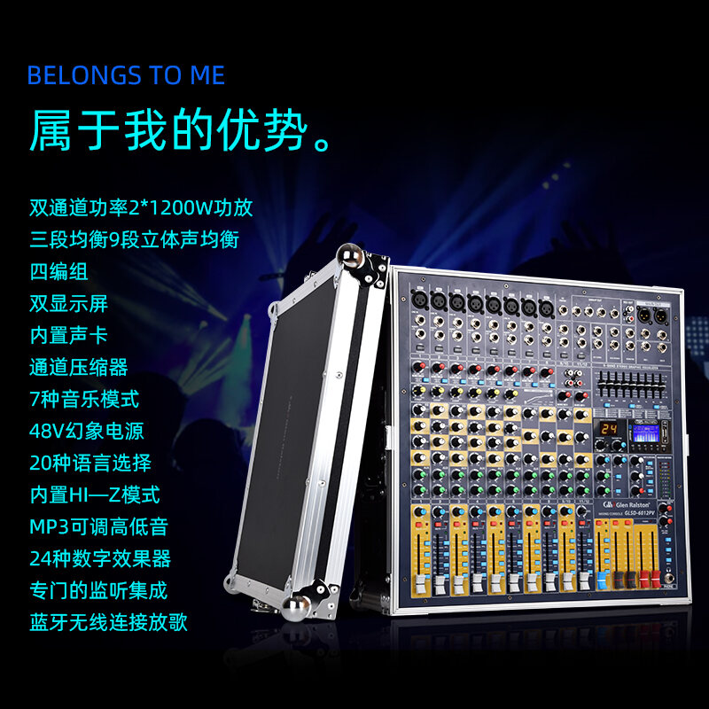 Glen Ralston Glenston Sound Console with Amplifier All-in-One 12-Way Effect USB Bluetooth Flight Case