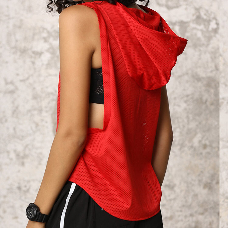 Summer Sports Women Yoga Tank Tops Loose Hoodies Running Fitness Crop Top Mesh Hooded Sleeveless Vest Dry Fit