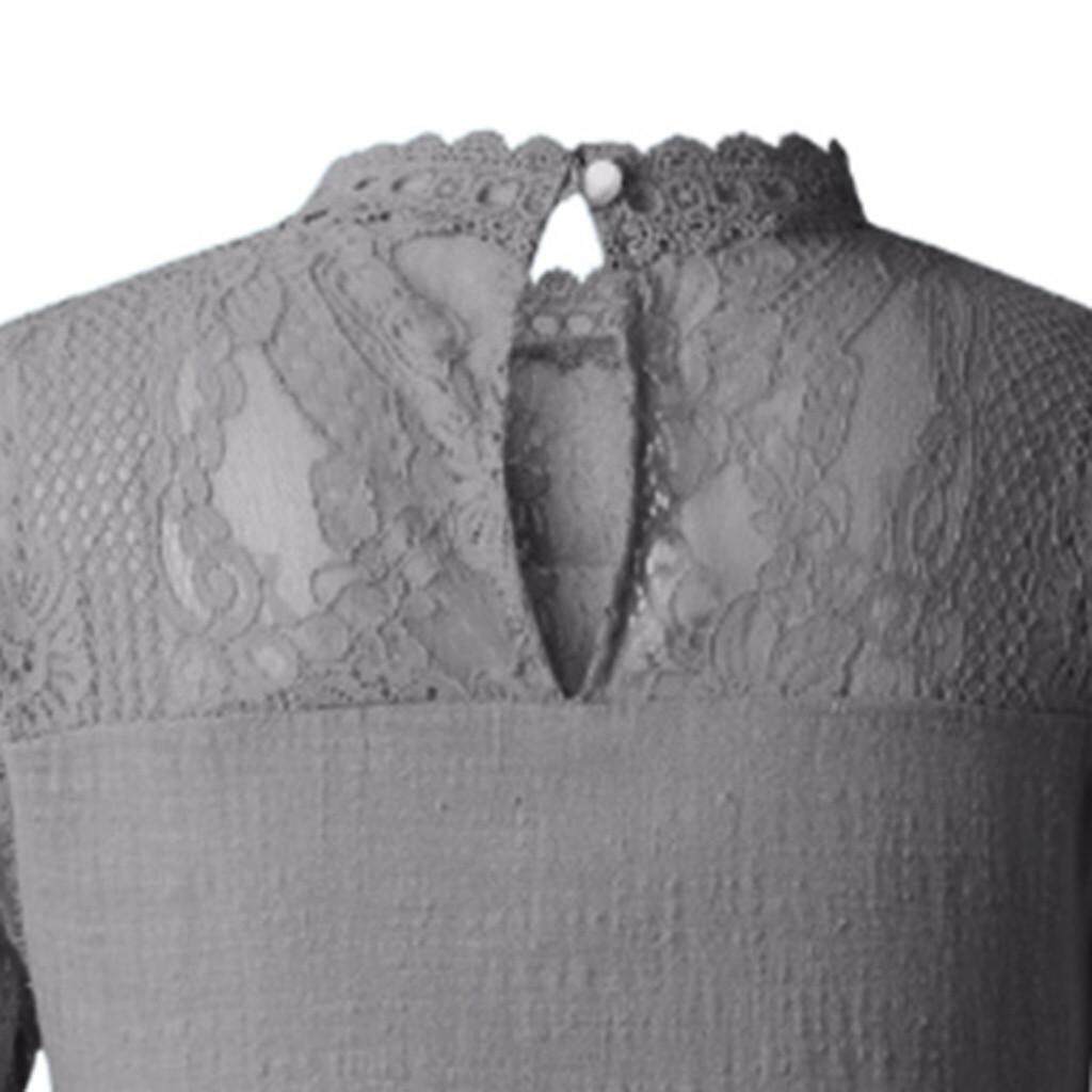 Womens Lace Patchwork Flare Ruffles Short Sleeve Cute Cotton Shirt Blouse Top