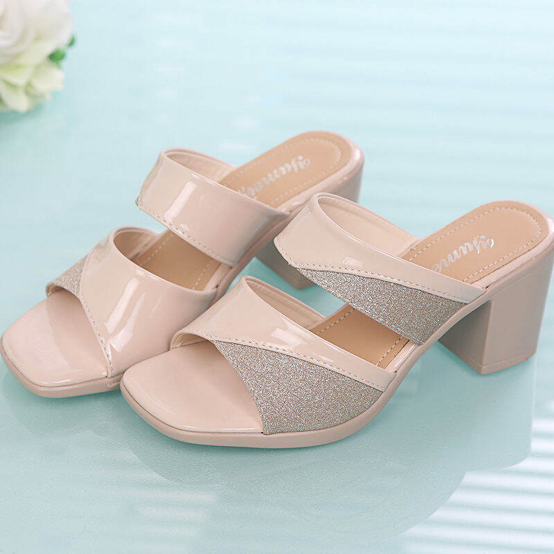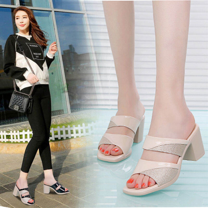 2022 New Summer Lazy Half Slippers Women's Shoes Sandals Peep Toe Chunky Heel Versatile Fashion Slippers Outer Wear Trendy Sandals
