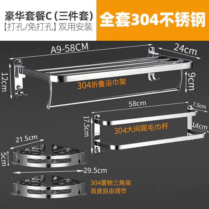 Bathroom Towel Rack Bathroom Towel Rack Punch-free Toilet 304 Stainless Steel Storage Rack Wall Hanging Clothes Rack