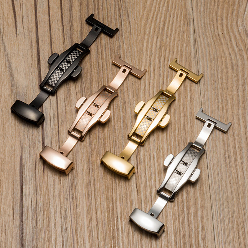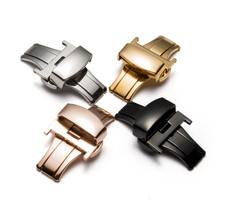 10mm 12mm 14mm 16mm 18mm 20mm 22mm 24mm Stainless Steel Solid Double Push Button Fold Watch Buckle Butterfly Clasp Automatic Rebound Quality Watch Straps Accessories