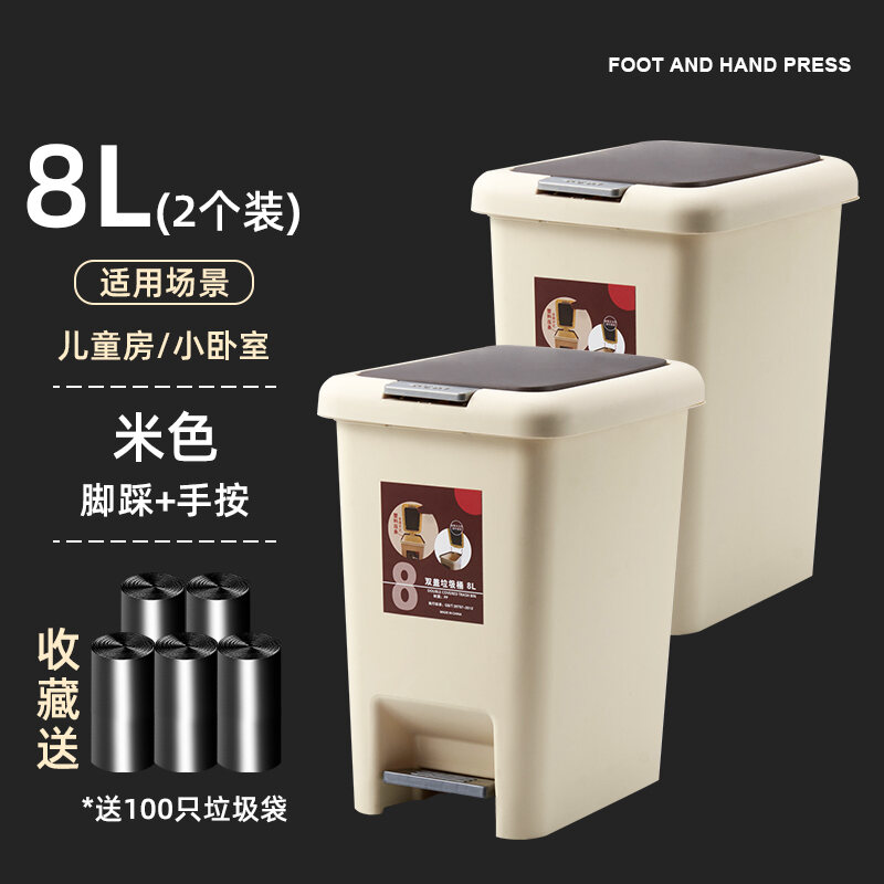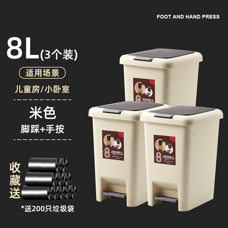 Household Trash Can with Lid, Covered Toilet, Living Room, Bedroom, Pedal-Type Small Paper Basket, Large Capacity