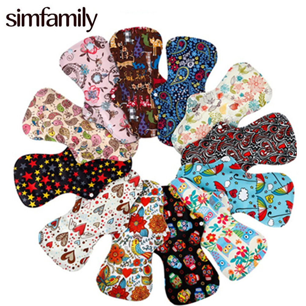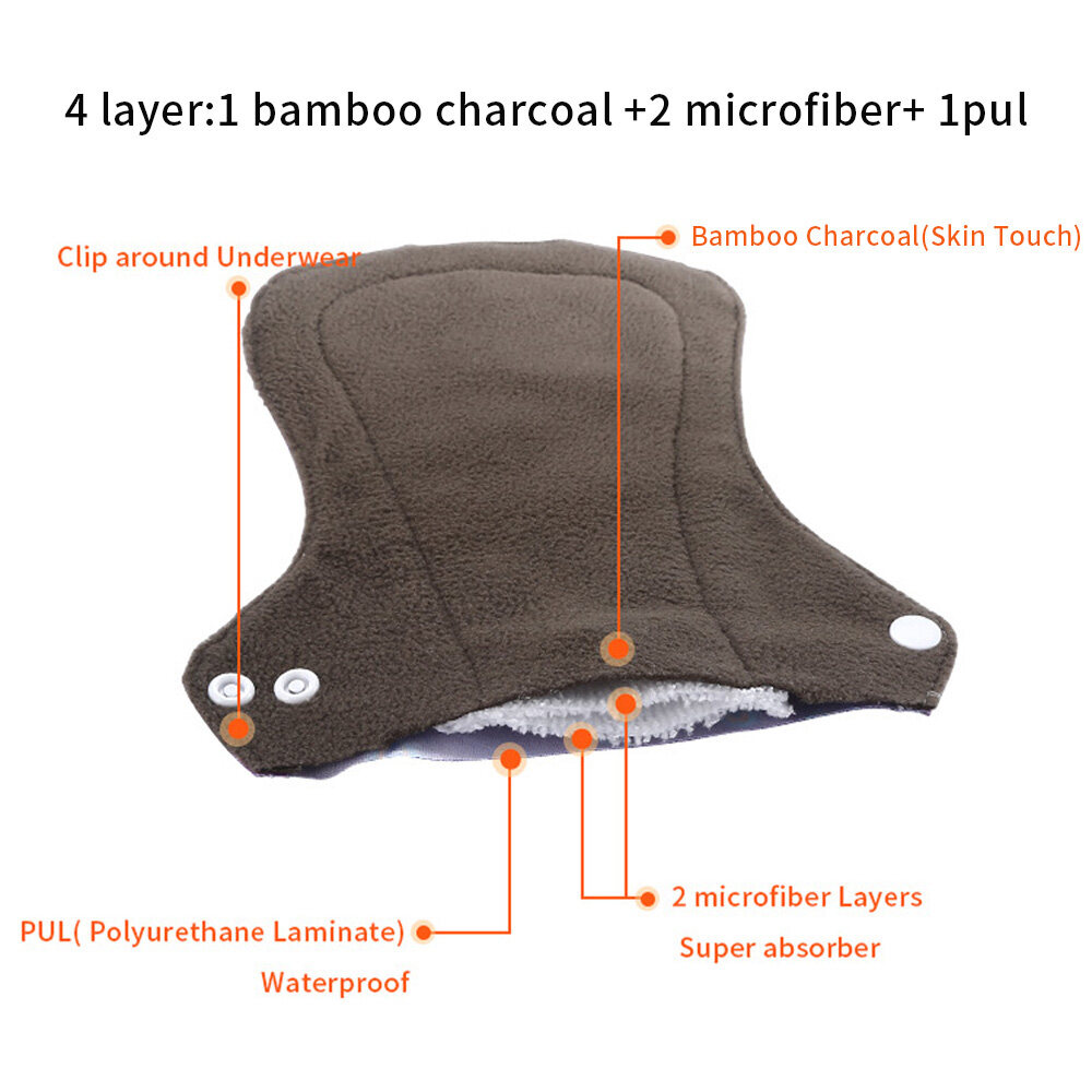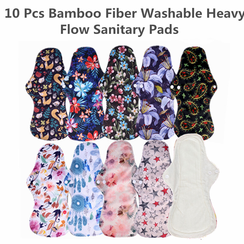 [simfamily] 10pcs Organic Bamboo Charcoal Washable Hygiene Menstrual Pads Heavy Flow Sanitary Pads Lady Cloth Pad Reusable Pads