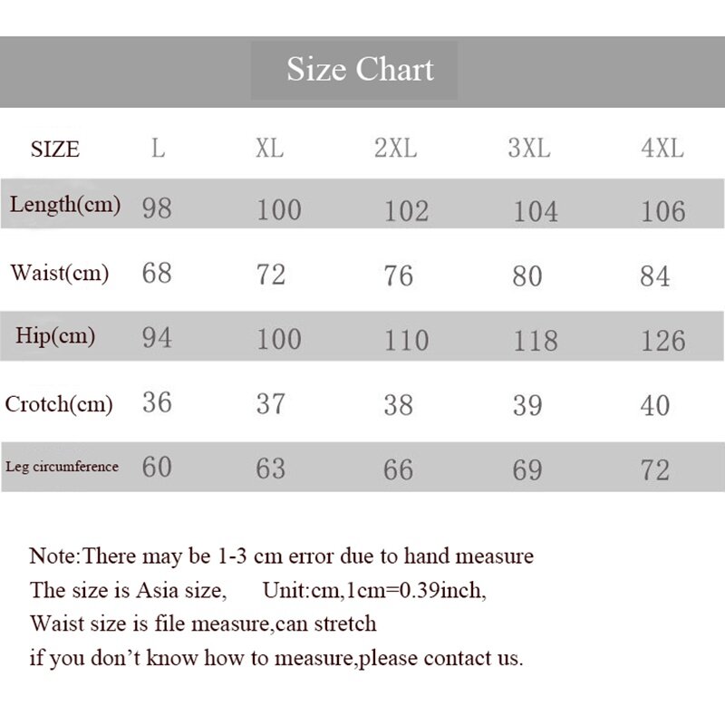 Hip:L-94cm/37inch;XL-100cm/39inch;2XL-110cm/43inch;3XL-118cm/46inch;4XL-126cm/49inch