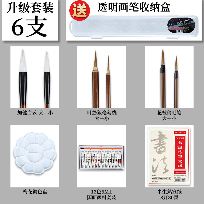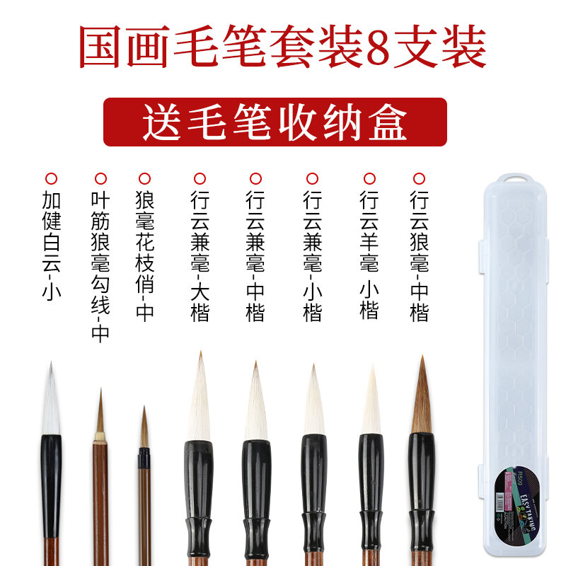 Chinese Painting Writing Brush Set Beginner's Full Set of Fine Brushwork Pen Chinese Landscape Freehand Painting Student Calligraphy Small Big White Clouds Painting Tools Professional Grade High-End W