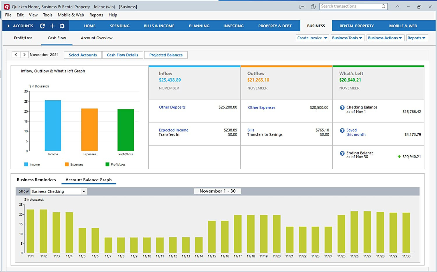 • Track your business profit and loss, identify tax-deductible expenses, and run Schedule C and E reports to make tax time easier